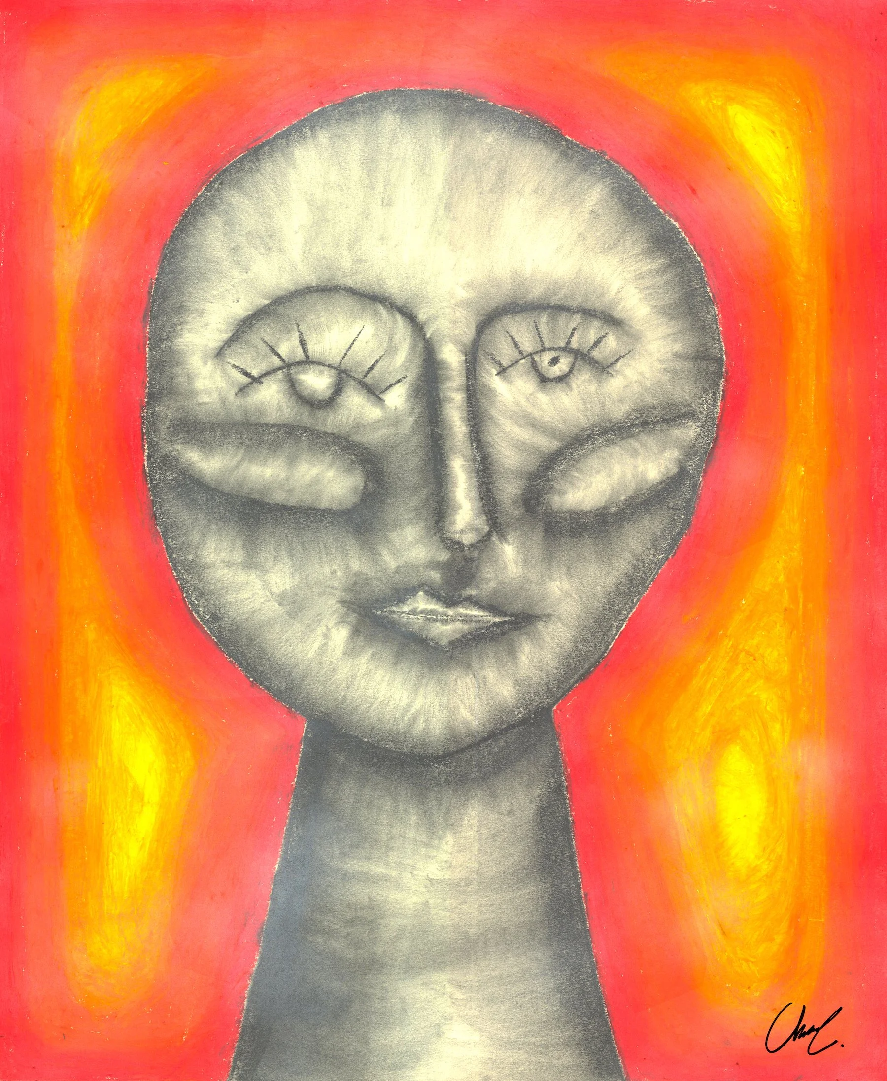 “Matron of the Sun”— graphite and oil pastel. August 2022.